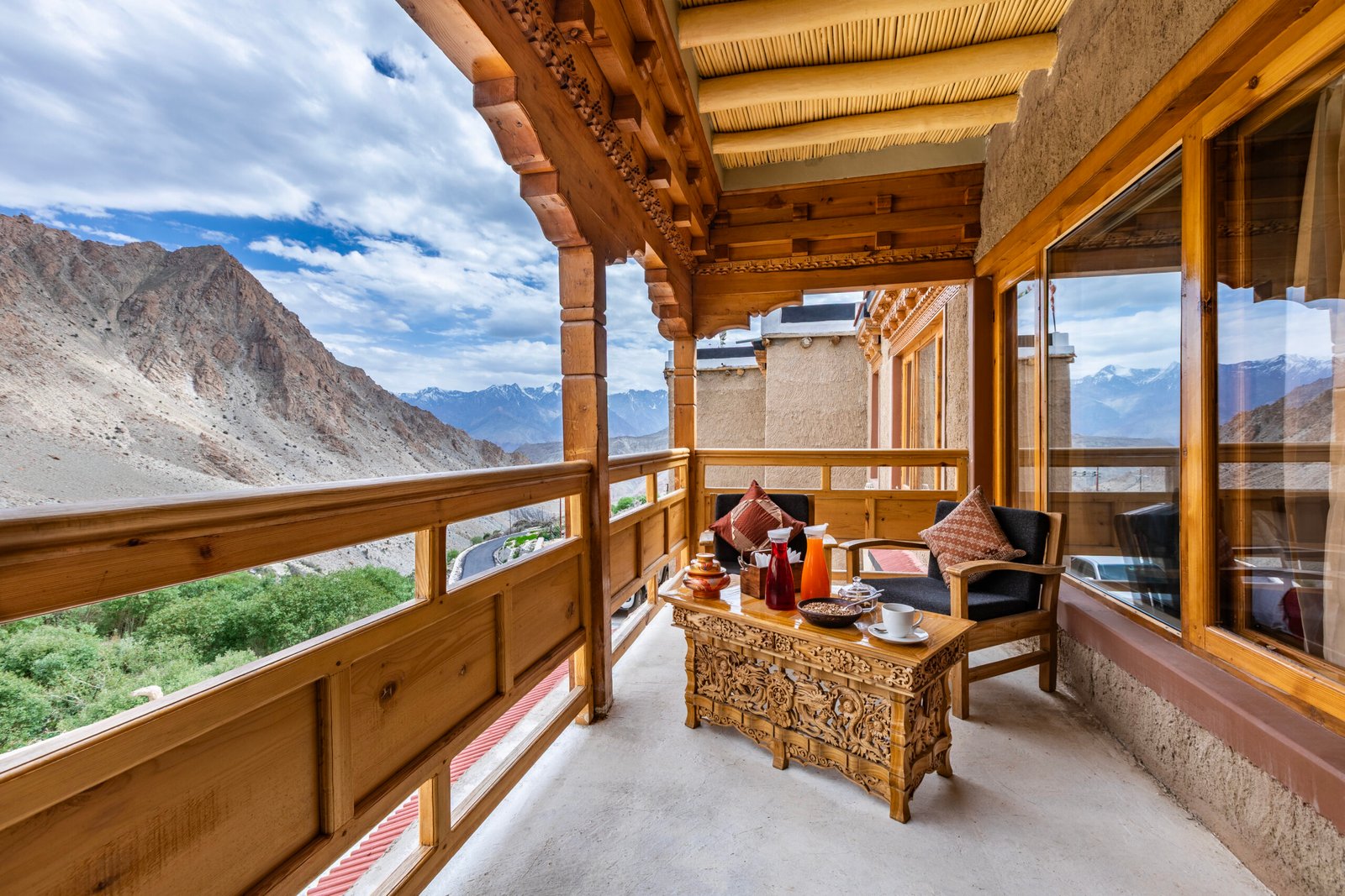 Perched at 11,562 ft in the Himalayas, The Grand Dragon Ladakh reigns as the region’s sole certified 5-Star hotel. Open year-round, its 76 rooms, including family suites, offer modern comforts amidst breathtaking vistas. Use it as a base for exploring Ladakh’s ancient monasteries like Hemis and Thiksey, or embark on overnight adventures to Pangong Tso, Nubra Valley, or Lamayuru. Indulge in dining experiences at Zasgyath, enjoy a cozy bonfire in the lawns, or opt for a scenic riverside picnic. Coming soon: a fully equipped gym and SPA. Elevate your Ladakh experience with a stay here.