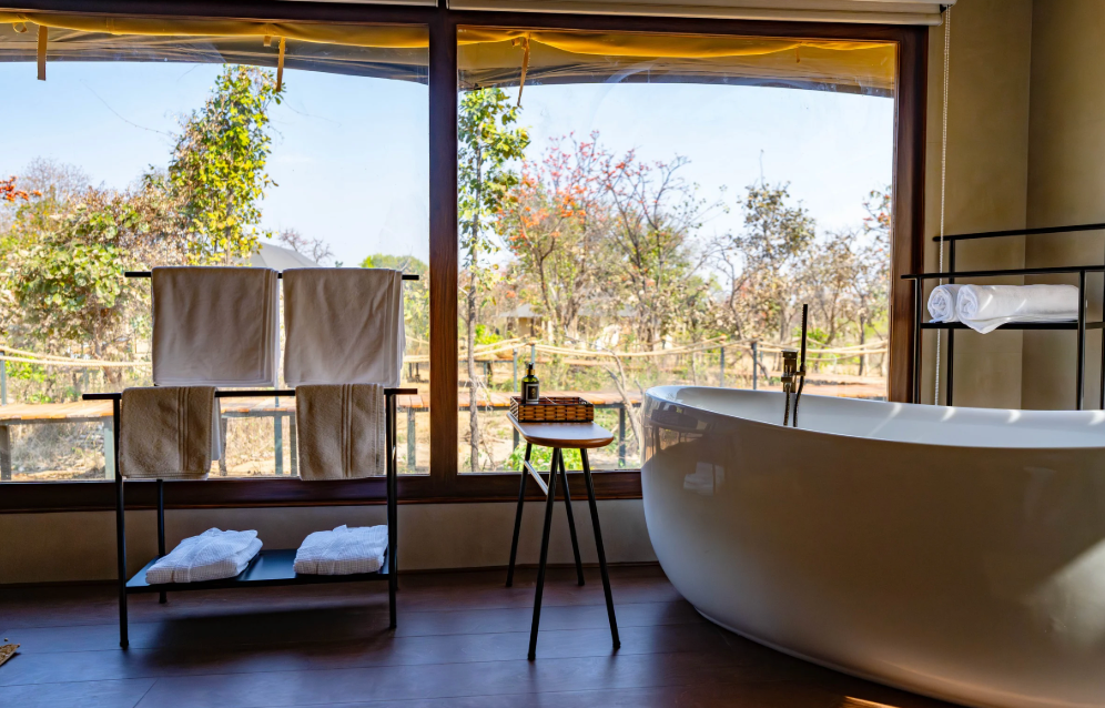 Bagh Villas is a boutique jungle camp nestled on the edge of Kanha Tiger Reserve, amidst the enchanting forests of Central India. Designed to immerse guests in the wilderness, it offers a seamless connection between humans and nature. Committed to wildlife conservation and sustainable tourism, The Lodge emphasizes eco-friendly practices across all aspects—from safaris and curated experiences to homegrown produce and amenities—ensuring a minimal carbon footprint and a “leave no trace” approach.