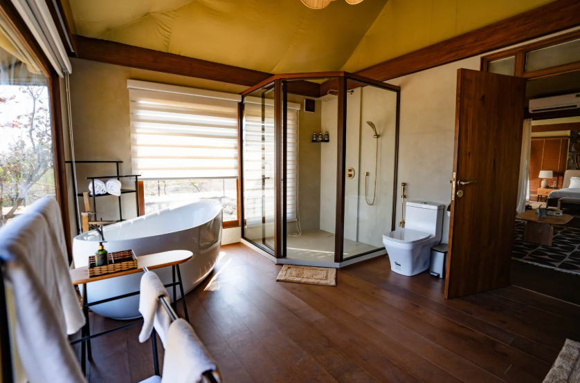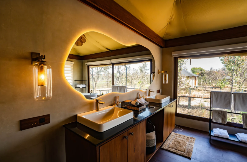 Bagh Tola Founder’s Camp in Bandhavgarh is an intimate boutique safari retreat that blends rustic charm with warm, understated luxury. The camp offers a select number of thoughtfully designed suites, each with a private sit-out, natural wooden accents, and modern ensuite bathrooms. Surrounded by sal forests and a quiet local hamlet, the setting is peaceful and deeply connected to Bandhavgarh’s wilderness. Their focus on fresh, locally inspired cuisine and genuinely personalised hospitality ensures a stay that feels both homely and unforgettable.
