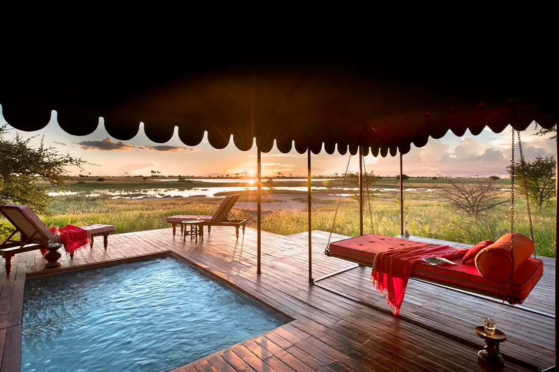 - 10 canvas tents with private verandas and plunge pools