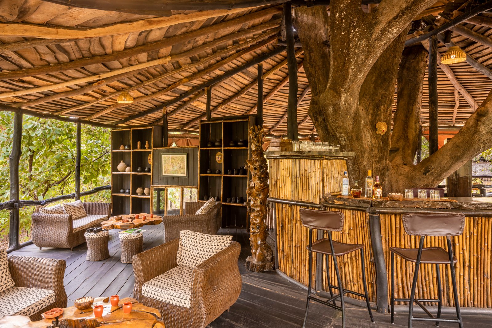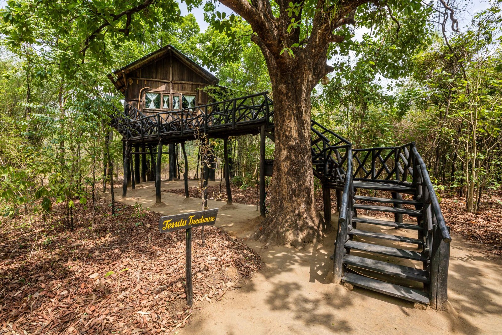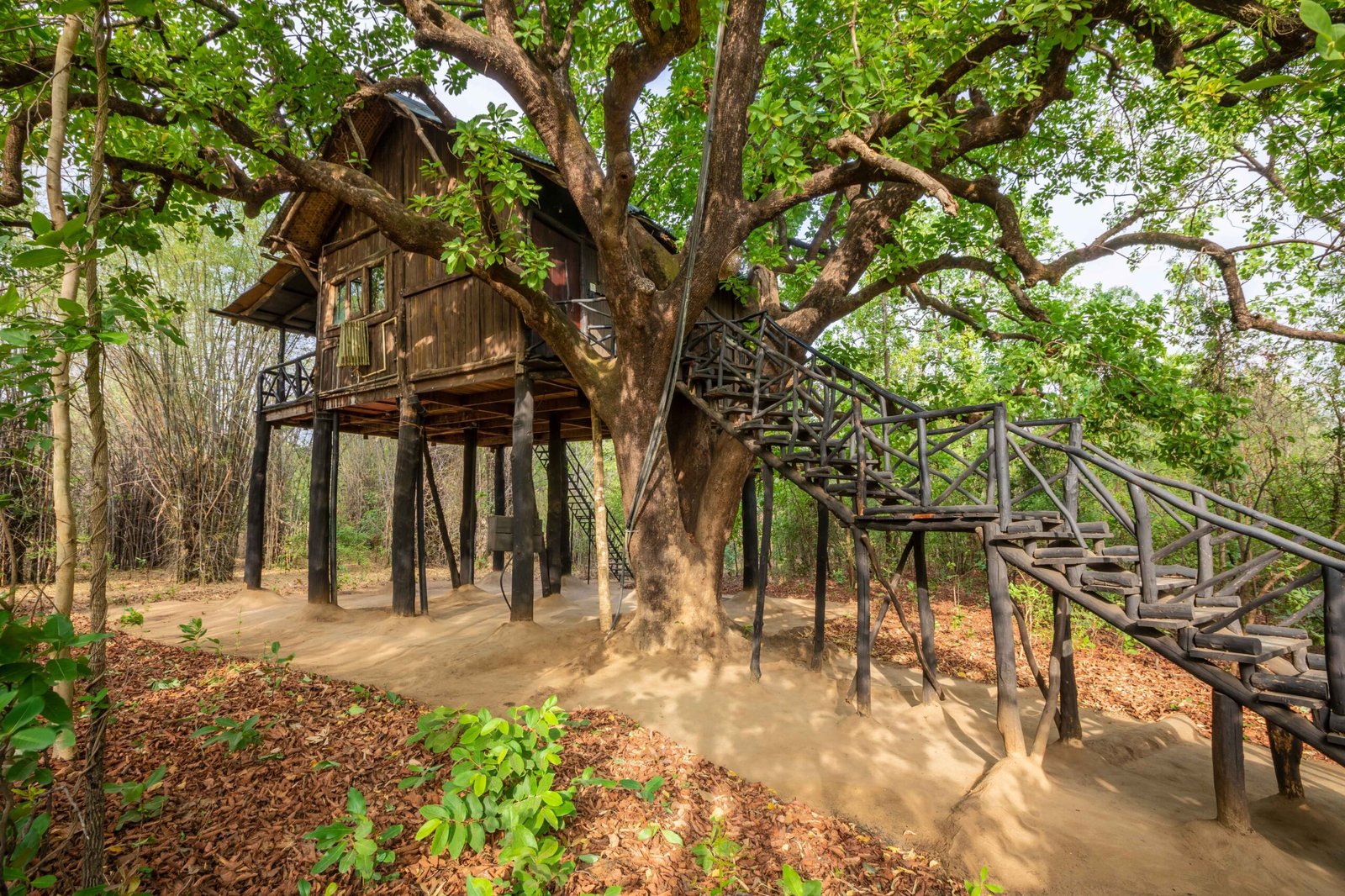 In the heart of Bandhavgarh, Tree House Hideaway offers a rare blend of seclusion, comfort, and wilderness. At Tree House Hideaway, five handcrafted tree houses rise above the forest canopy, each built from local wood and stone to create a natural yet luxurious retreat. From your private deck at Tree House Hideaway, you can gaze across dense jungle and a peaceful watering hole where deer, langurs, and exotic birds gather, and if you are lucky, even a tiger may appear. Inside, Tree House Hideaway surrounds you with elegant interiors, warm earth tones, and modern amenities that ensure every stay feels both indulgent and deeply connected to nature. More than a lodge, Tree House Hideaway is an immersive experience of living in harmony with the trees, where every sunrise and sunset draws you closer to the wild rhythm of Bandhavgarh.