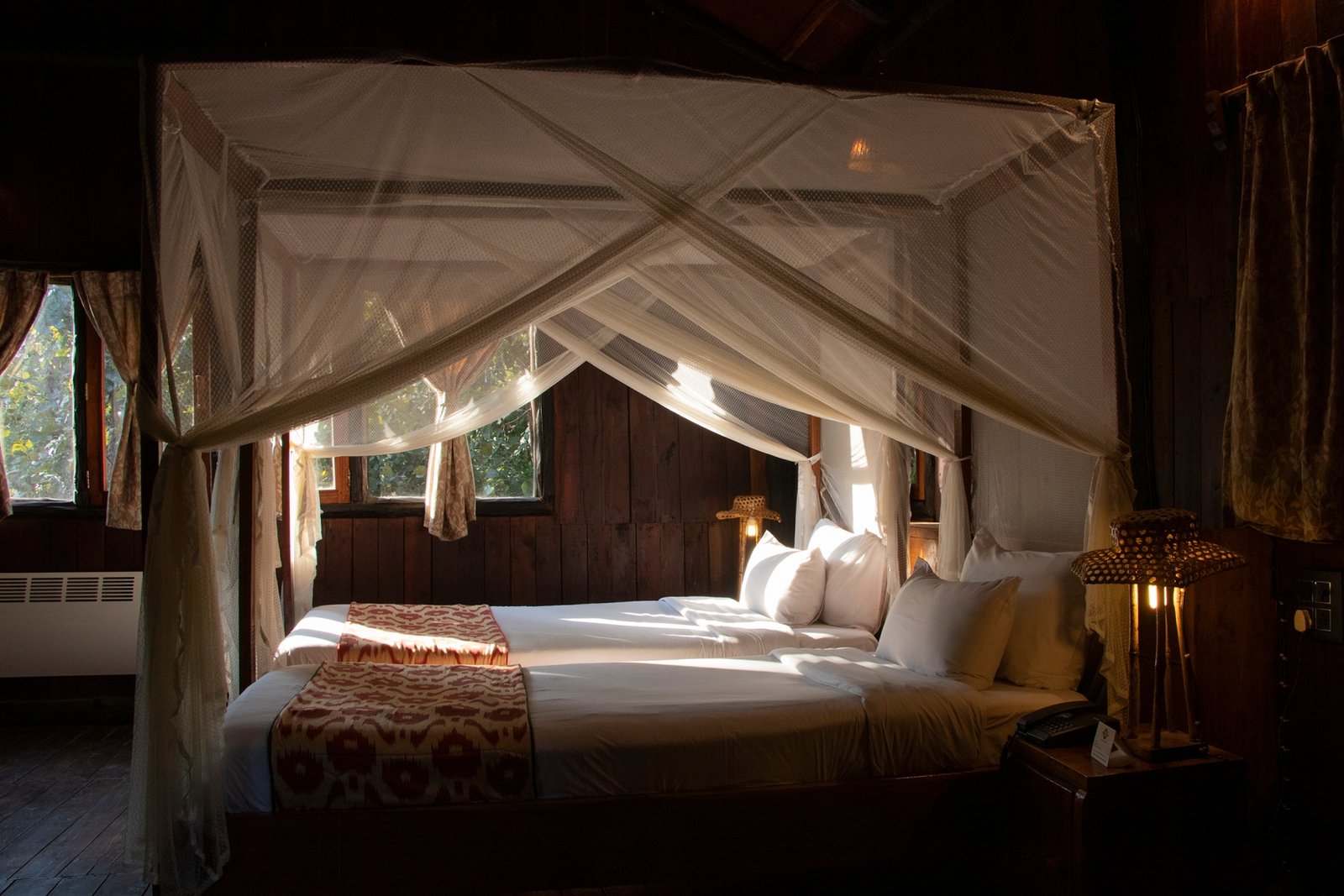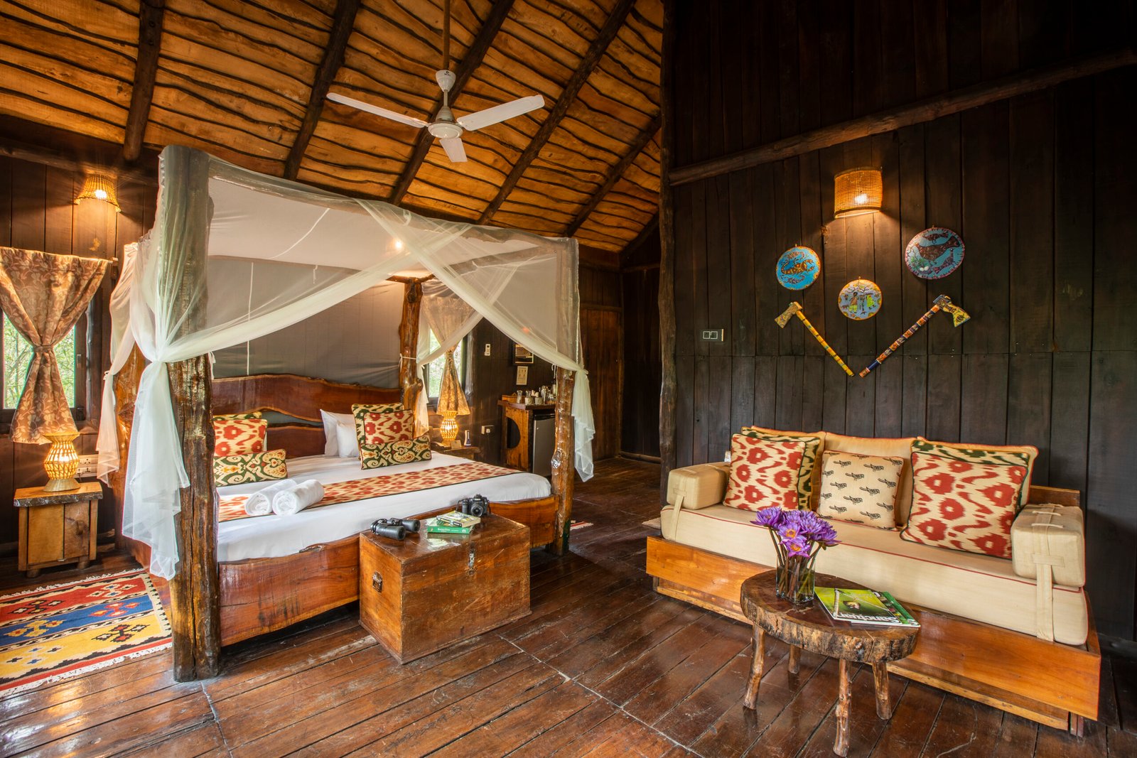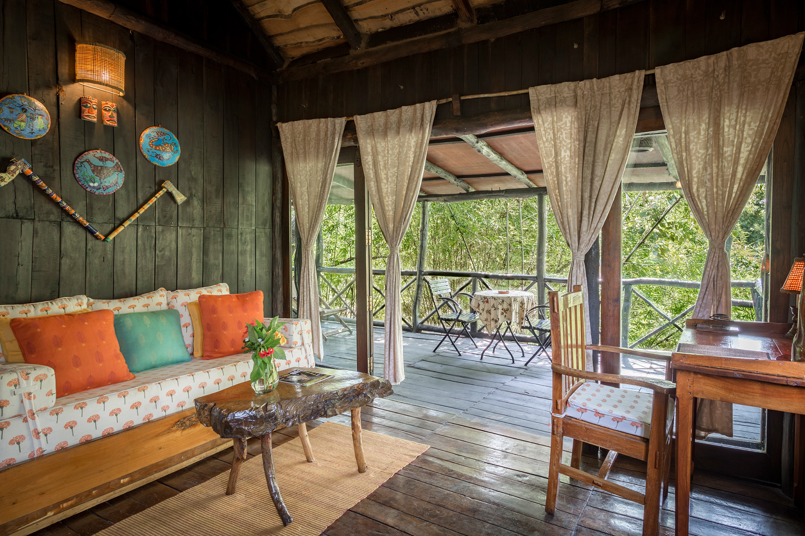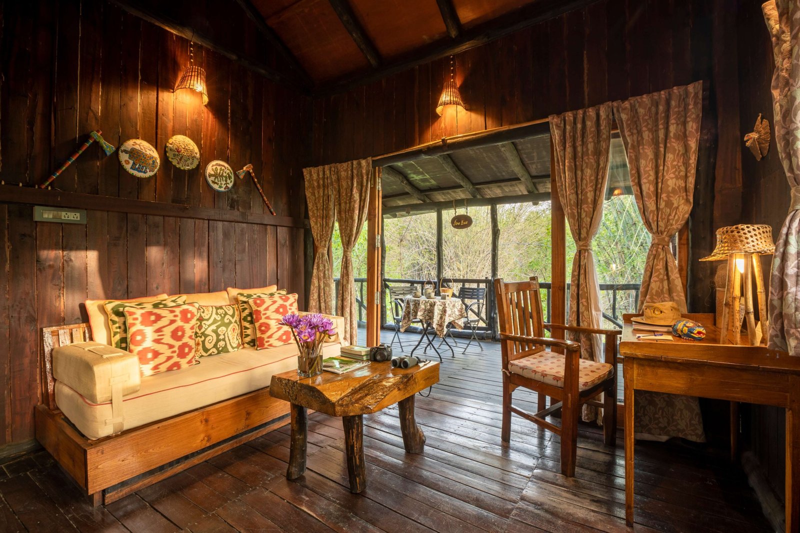 In the heart of Bandhavgarh, Tree House Hideaway offers a rare blend of seclusion, comfort, and wilderness. At Tree House Hideaway, five handcrafted tree houses rise above the forest canopy, each built from local wood and stone to create a natural yet luxurious retreat. From your private deck at Tree House Hideaway, you can gaze across dense jungle and a peaceful watering hole where deer, langurs, and exotic birds gather, and if you are lucky, even a tiger may appear. Inside, Tree House Hideaway surrounds you with elegant interiors, warm earth tones, and modern amenities that ensure every stay feels both indulgent and deeply connected to nature. More than a lodge, Tree House Hideaway is an immersive experience of living in harmony with the trees, where every sunrise and sunset draws you closer to the wild rhythm of Bandhavgarh.